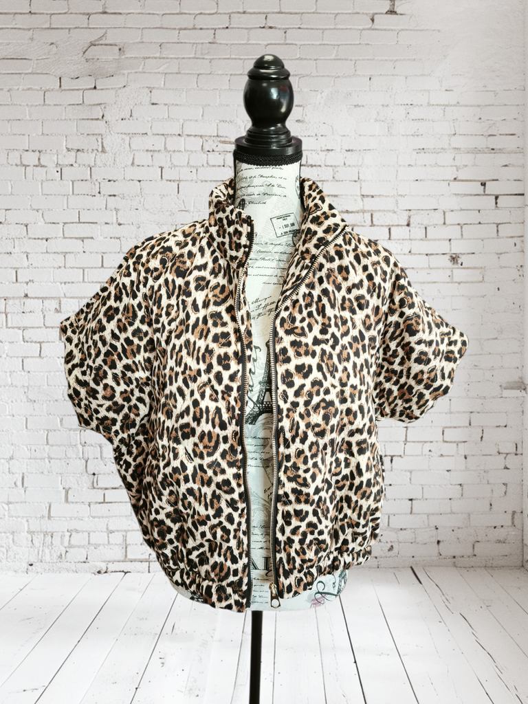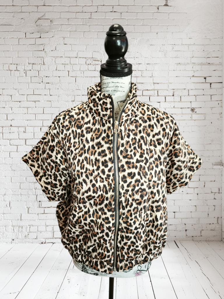 Une jolie doudoune en coton épais molletonné, zippée à l'imprimé léopard et une touche de lurex.
