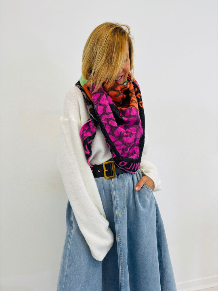 Echarpe toute douce et douillette à l'imprimé tendance et coloré.