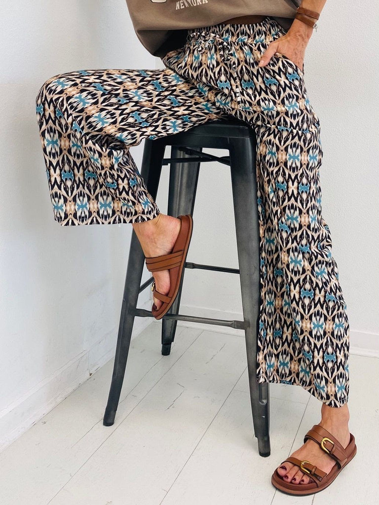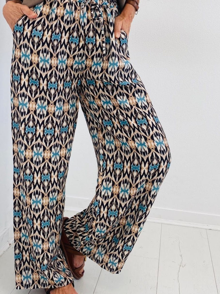 Quel joli pantalon fluide ! il est élastique à la taille et possède un cordon de resserrage.