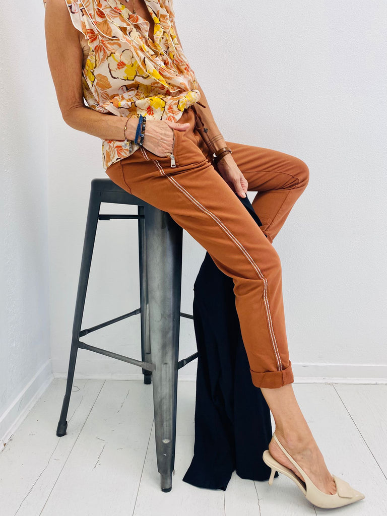 Un pantajogg plutôt tendance de par son liseré sur les côtés et ses poches zippées.