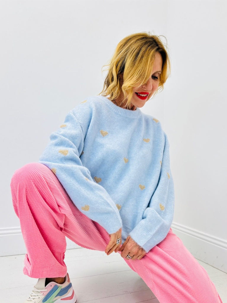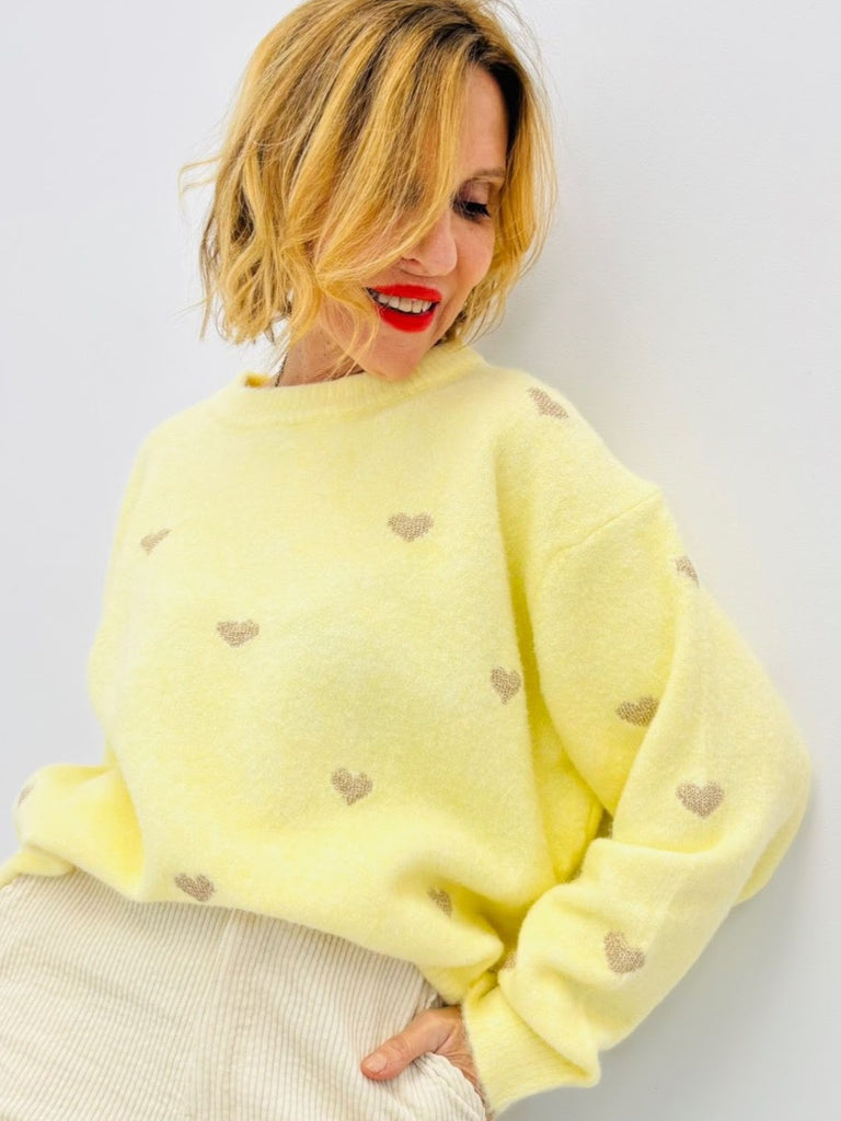 De la douceur que ce petit pull tout douillet et ses petits coeurs brodés.