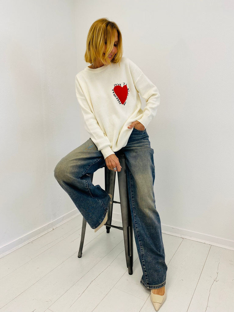 Pull col rond avec un coeur en moumoute dans le dos.
