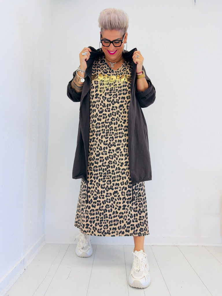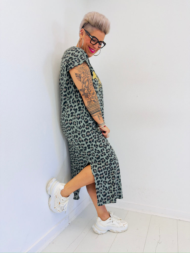 Voici un nouveau modèle de robe pour nos jolies rondes, en coton avec un imprimé léopard très tendance.