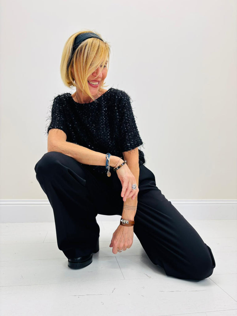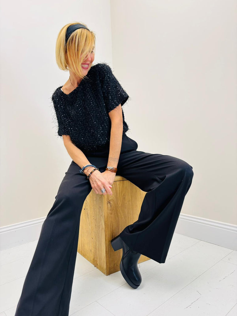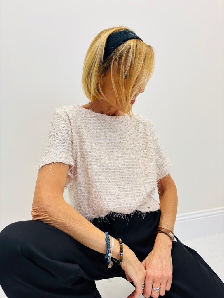 Un joli petit top à manches courtes qui viendra sublimer votre tenue pour les fêtes.