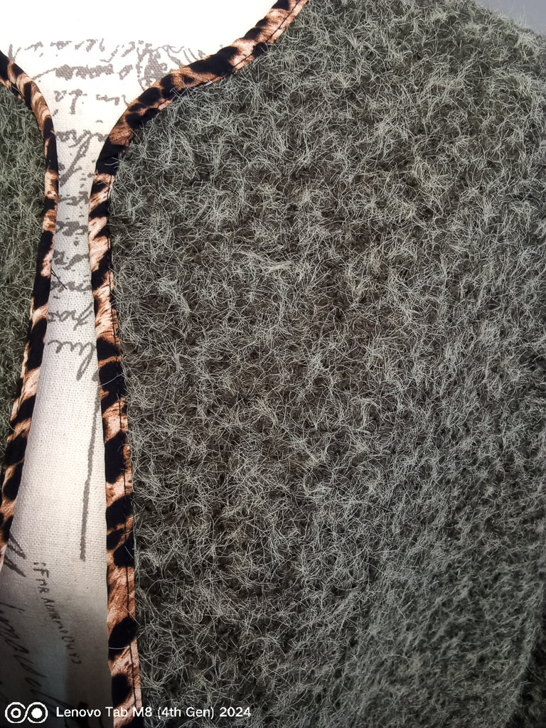 Une très jolie veste en laine bouillie avec une petite bordure léopard adorable.
