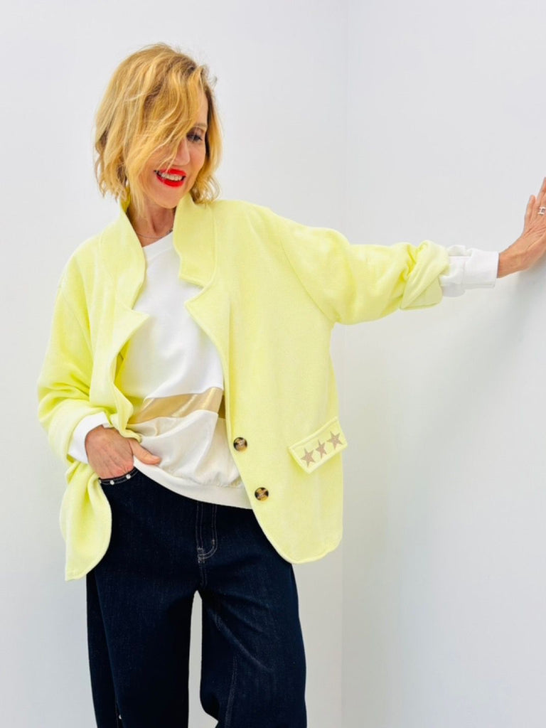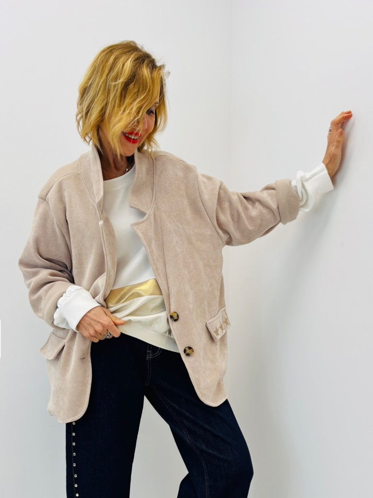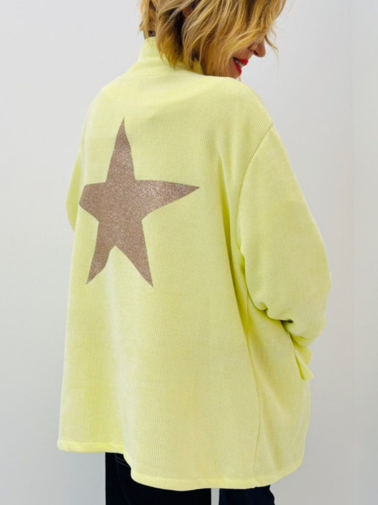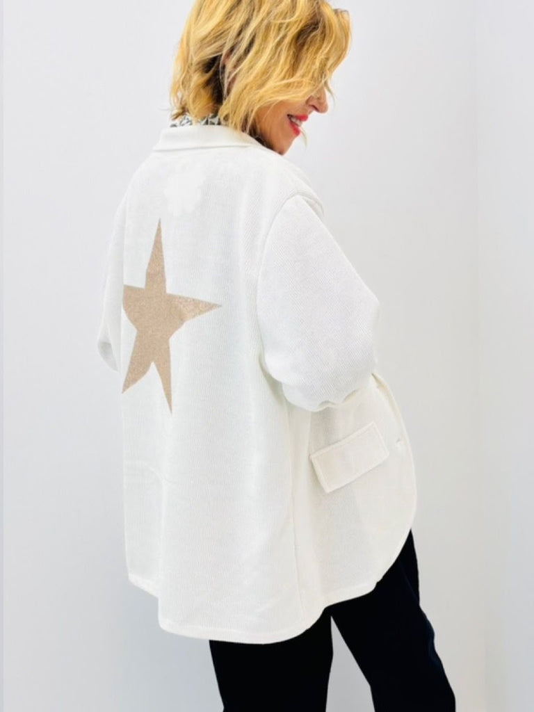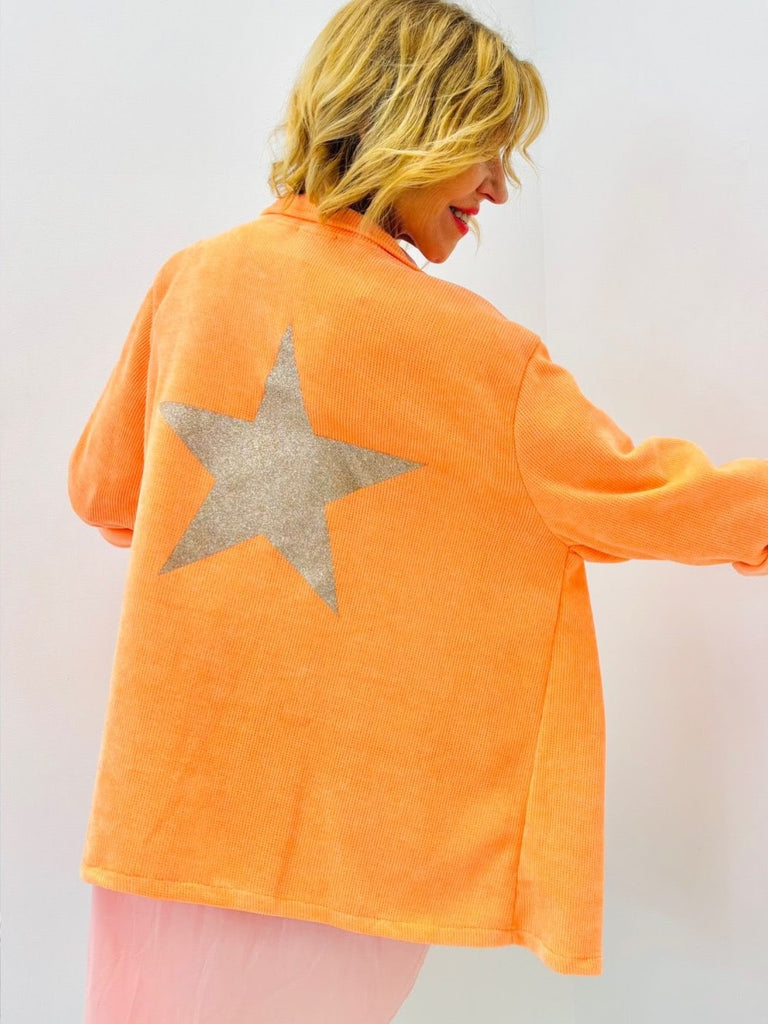 Veste en velours côtelé tout doux avec une étoile dorée dans le dos et petits détails sur une poche.